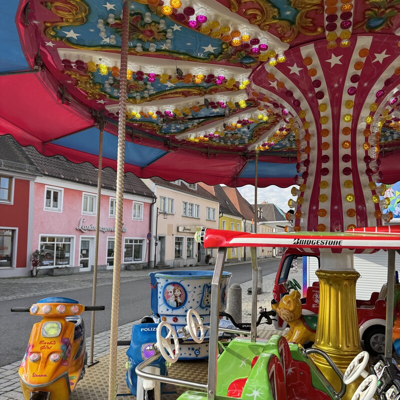 Wie jedes Jahr durften wir auch wieder am Marktplatz Karussell fahren. Auch den aufgestellten Kirwabaum mussten wir uns natürlich nochmal anschauen.